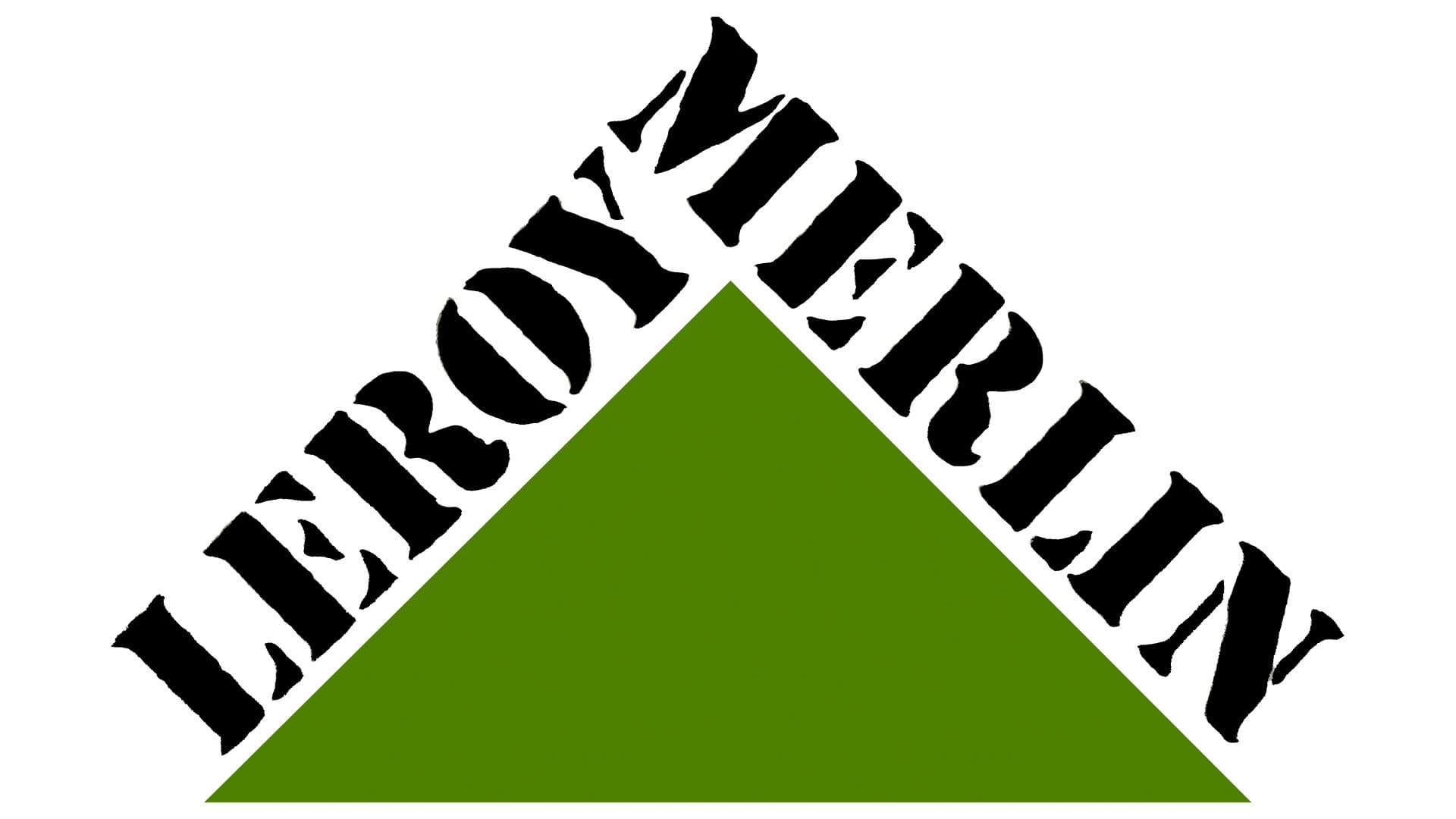 Le logo de la société comporte la marque, le nom de ses deux fondateurs. Le logo Leroy Merlin comporte un triangle avec un mot-symbole placé sur ses deux côtés. La couleur du triangle est vert vif. Celui-ci, debout sur sa base est un symbole de stabilité ainsi que de la confiance. Tandis que sa couleur verte agréable à la vue, représente l’équilibre, l’harmonie et la croissance.